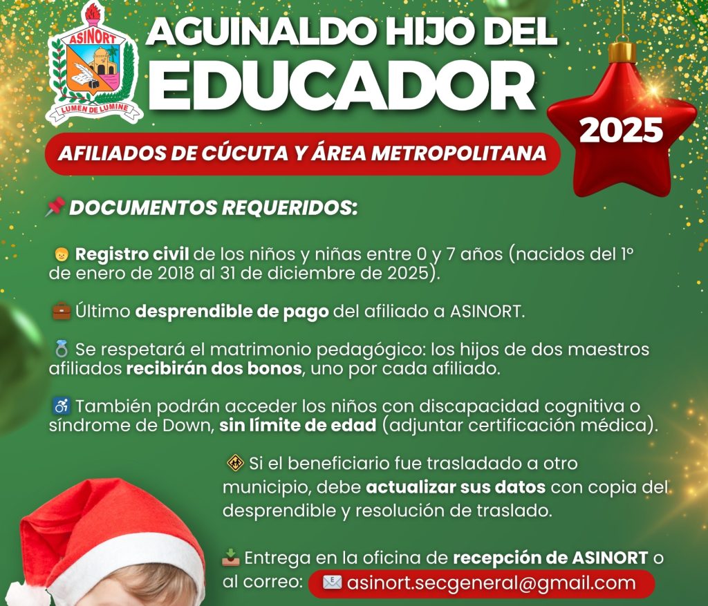 CIRCULAR No.73- Aguinaldo Hijo del Educador 2025 Cúcuta y Area MetropolitanaDescarga CIRCULAR No.74 – Aguinaldo Hijo del Educador DEPARTAMENTO 2025Descarga
