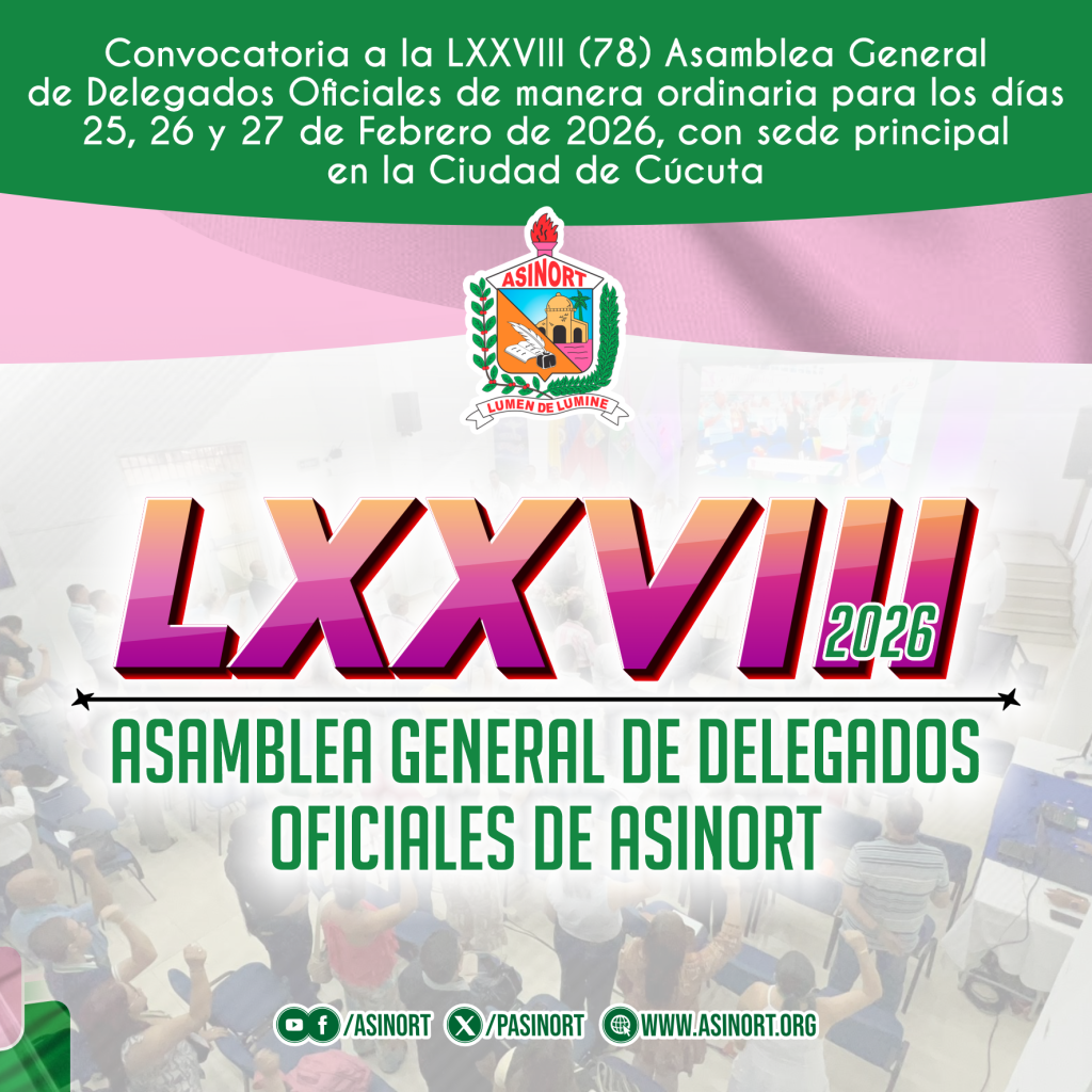 ¡Atención Delegados Oficiales de ASINORT! Convocatoria a la LXXVIII (78) Asamblea General Ordinaria Fechas: 25, 26 y 27 de febrero de 2026…